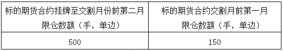 期权合约和期货合约分开限仓。客户持有的某月份期权合约所有看涨期权的买持仓量和看跌期权的卖持仓量之和、看跌期权的买持仓量和看涨期权的卖持仓量之和,分别不得超过下表所示的持仓限额。具有实际控制关系的账户按照同一个账户管理。