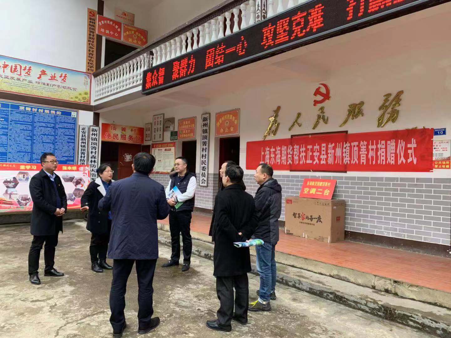 会后,东海期货一行在驻村干部程广生的陪同下,实地走访考察新州镇顶箐村,为设施老旧的村委办公室捐赠办公用空调2台,同时初步达成捐赠8万元的帮扶意向,用于改善顶箐村基础设施建设,提升该村基建水平,从而进一步转变顶箐村集体经济发展弱势,破除制约村民脱贫的困难、障碍,为打通脱贫攻坚的“最后一公里”、为当地实现“一村一品”脱贫攻坚助力。
