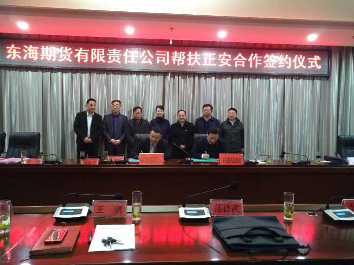 为积极贯彻党的十九大精神,坚决落实中国证监会、中国期货业协会精准扶贫工作的相关指导思想,东海期货于2月28日与贵州省正安县签署了“一司一县”帮扶合作框架协议,东海期货总经理陈太康、东海资本总经理苏振军、东海期货综合管理部副总经理黄勇,正安县县委常委、常务副县长黄东,县委常委、组织部部长王琇,县委常委、副县长李国文,副县长陈孝利,县委办、县政府办、县扶贫开发办,县财政局、教育局、计卫局、移民服务中心等相关领导出席签约仪式。