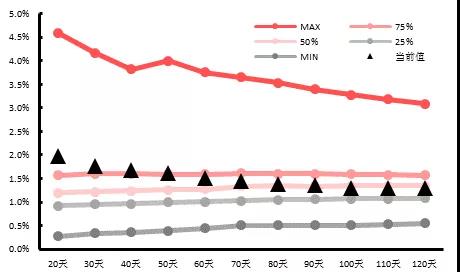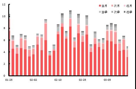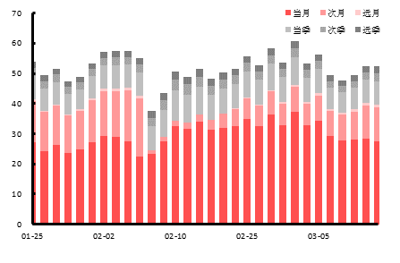 期权行情:成交方面,看涨、看跌期权成交量均有所上涨。近月平值看涨期权隐含波动率为14.44%,较前值下降11.55%;看跌期权隐含波动率为24.76%,较前值下降3.56%。