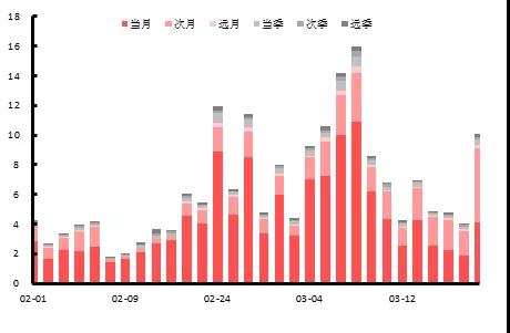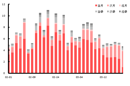 期权行情:成交方面,看涨、看跌期权成交量较前值有所下降。近月平值看涨期权隐含波动率为16.31%,较前值下降0.83%;看跌期权隐含波动率为27.84%,较前值上升1.61%。