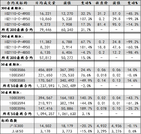 图9、看涨期权隐含波动率(近月平值) 图10、看跌期权隐含波动率(近月平值)