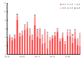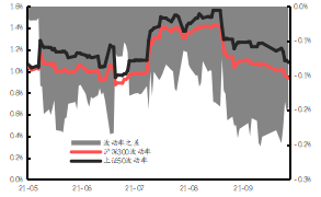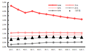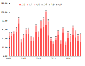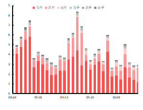 期权行情:看涨与看跌合约日均成交量均有所上涨。近月平值看涨期权隐含波动率为15.66%,较前值下降1.11%;看跌期权隐含波动率为16.86%,较前值下降2.52%。