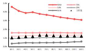 图13、沪深300指数波动率锥 图14、上证50指数波动率锥