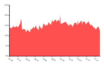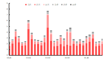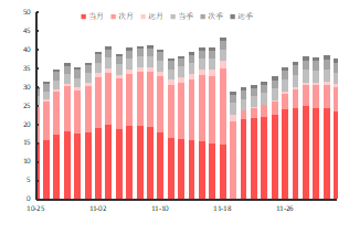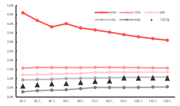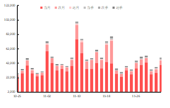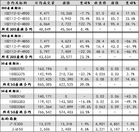 期权行情:本周看涨与看跌期权合约日均成交量均大幅上涨。近月平值看涨期权隐含波动率为12.19%,较前值下降0.64%;看跌期权隐含波动率为12.96%,较前值下降2.04%。