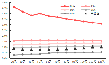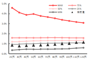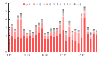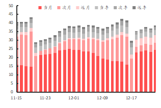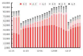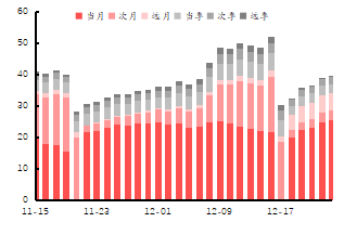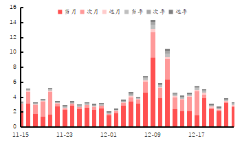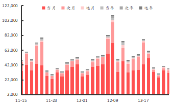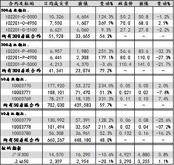 期权行情:合约换月后日均成交量大幅上升。近月平值看涨期权隐含波动率为14.33%,较前值下降0.95%;看跌期权隐含波动率为12.79%,较前值下降0.14%。