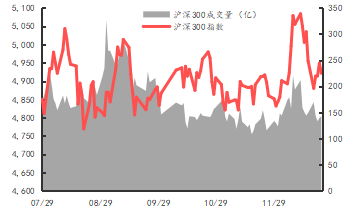 标的指数与行情:上周沪深300指数收于4921.34点,较前值下跌0.67%;成交额方面上周累计成交13750亿元,日均成交2750亿元,较前值下降501亿元。两市融资融券余额为17239亿元,北向资金当周净流出12亿元。涨幅前五的行业分别是农林牧渔(6.49%)、食品饮料(3.94%)、建材(2.02%)、商贸零售(1.59%)、家电(1.46%);涨幅后五的行业分别是基础化工(-3.44%)、钢铁(-3.88%)、综合金融(-4.09%)、有色金属(-5.13%)、电力设备及新能源(-6.69%)。