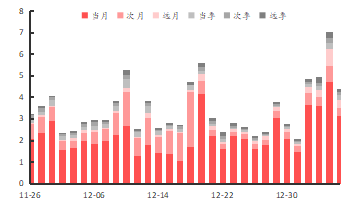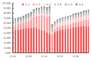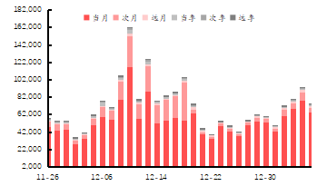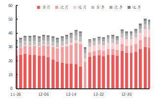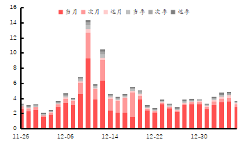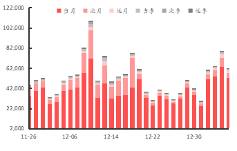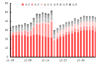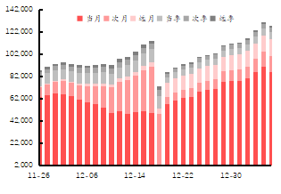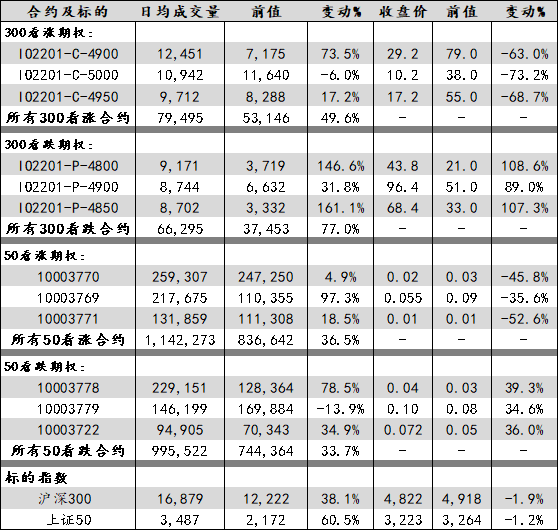 期权行情:本周期权合约日均成交量大幅上涨。近月平值看涨期权隐含波动率为14.68%,较前值下降1.71%;看跌期权隐含波动率为14.66%,较前值上升1.73%。