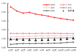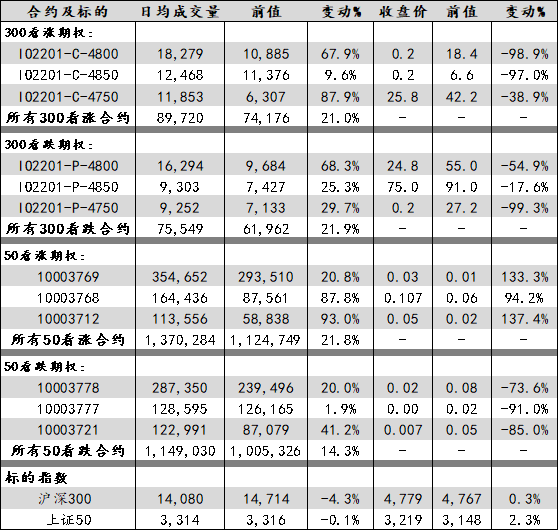 期权行情:期权合约日均成交量有所上升。近月平值看涨期权隐含波动率为16.75%,较前值上升0.36%;看跌期权隐含波动率为16.63%,较前值上升0.62%。