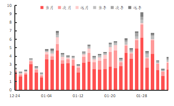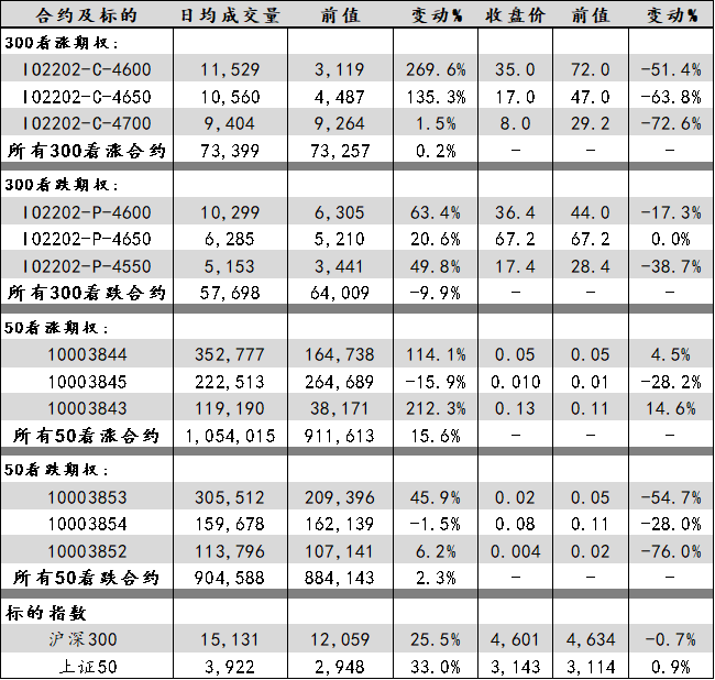 期权行情:上周看跌期权日均成交量有所减少。近月平值看涨期权隐含波动率为13.21%,较前值下降11.31%;看跌期权隐含波动率为13.21%,较前值下降11.87%。