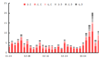 期权行情:期权日均成交量大幅上涨。近月平值看涨期权隐含波动率为23.06%,较前值上升7.29%;看跌期权隐含波动率为22.78%,较前值上升7.07%。