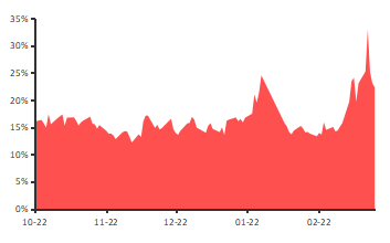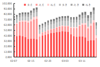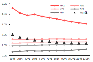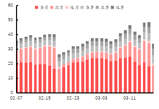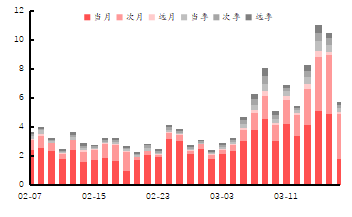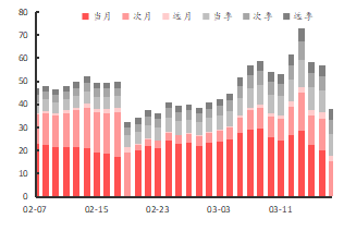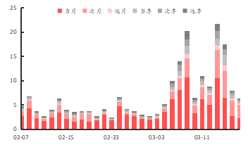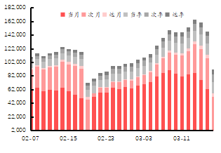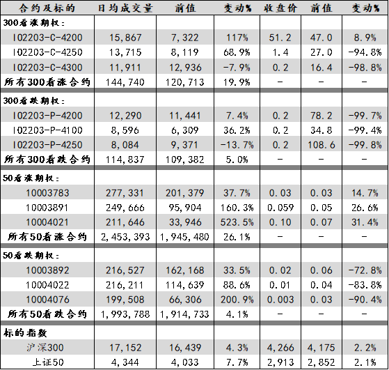 期权行情:期权日均成交量继续上升。近月平值看涨期权隐含波动率为22.31%,较前值下降0.75%;看跌期权隐含波动率为22.89%,较前值上升0.11%。
