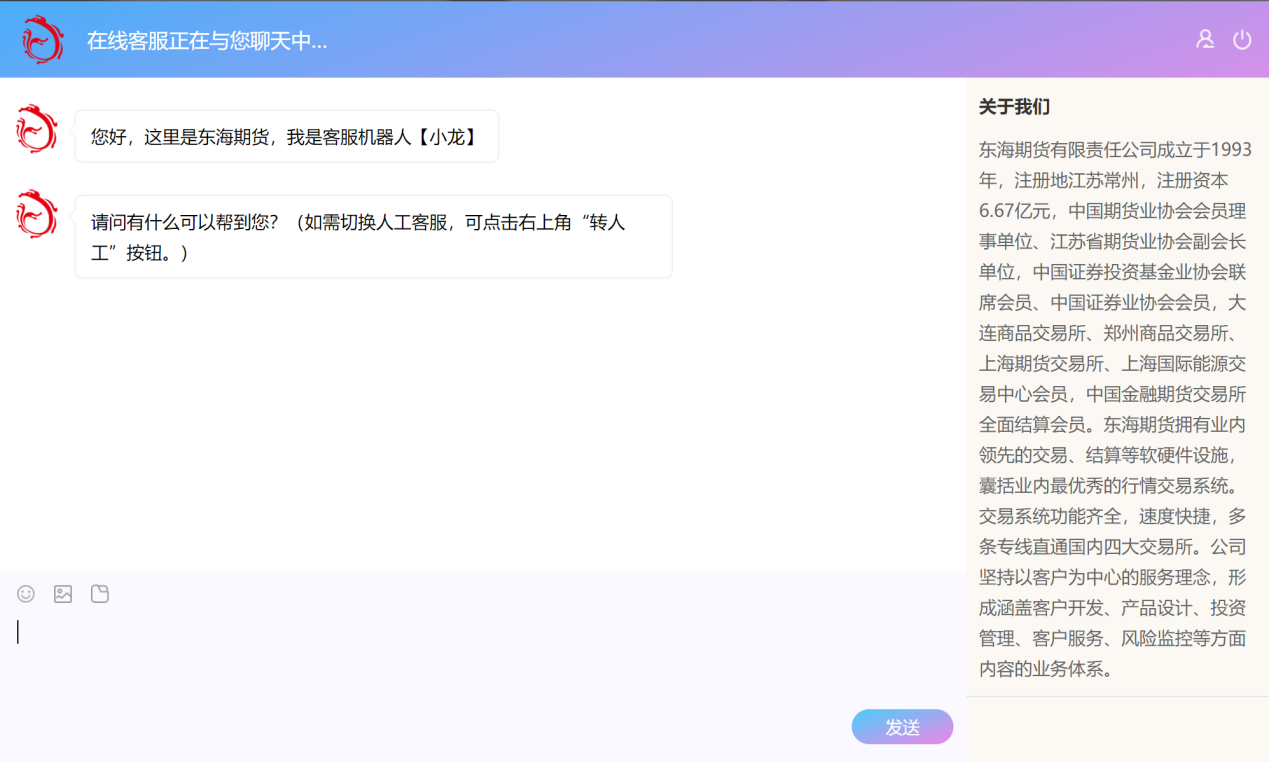 智能客服:登录东海期货官网,点击在线客服,我们将以最亲切的语言及先进的AI技术,伴您左右。