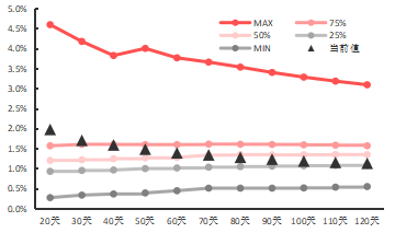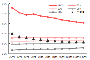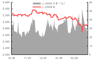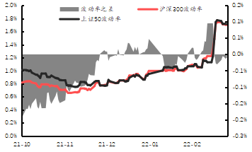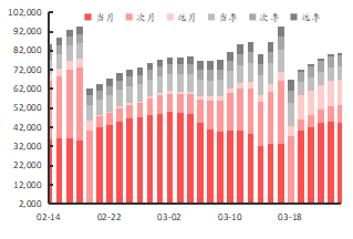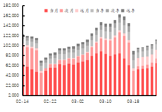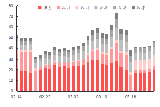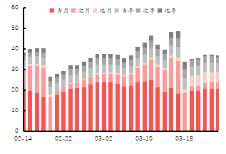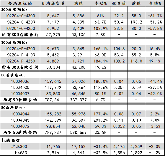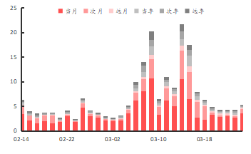 期权行情:期权合约日均成交量普遍上行。近月平值看涨期权隐含波动率为19.81%,较前值下降0.28%;看跌期权隐含波动率为18.36%,较前值下降2.26%。