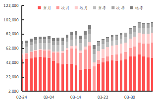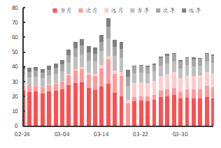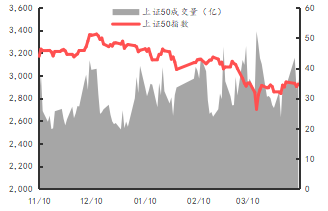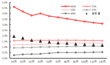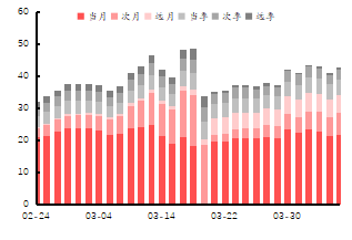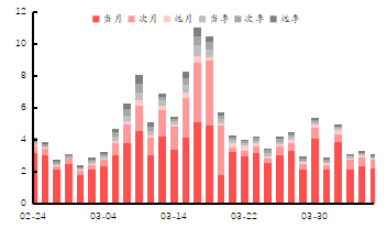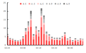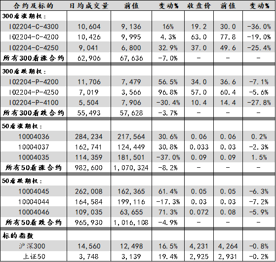 期权行情:期权合约日均成交小幅缩量。近月平值看涨期权隐含波动率为19.18%,较前值下降1.12%;看跌期权隐含波动率为18.89%,较前值下降1.35%。