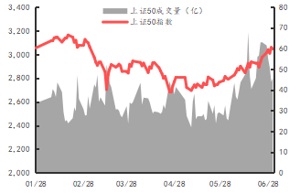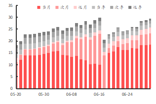 期权行情:上周合约日均成交量小幅增长。近月平值看涨期权隐含波动率为21.01%,较前值上升2.02%;看跌期权隐含波动率为20.87%,较前值上升1.83%。