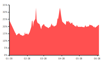 图10:看跌期权隐含波动率(近月平值) |