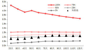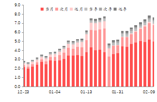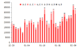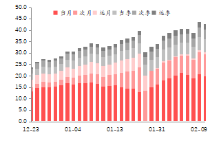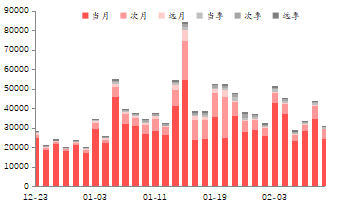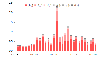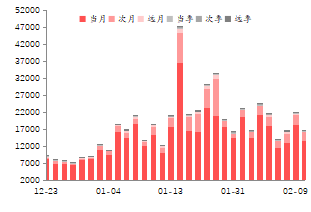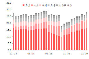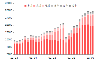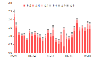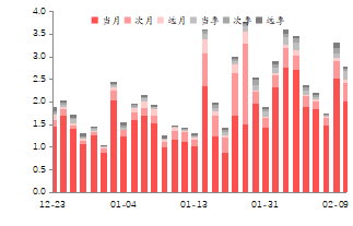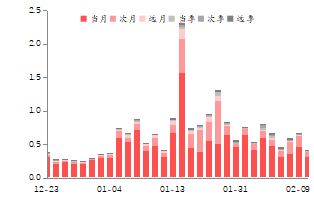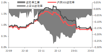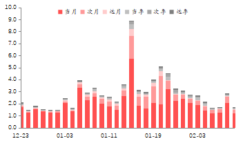 大小指数期权合约日均成交量分化;近月平值看涨期权隐含波动率为14.82%,较前值下降1.36%;看跌期权隐含波动率为15.12%,较前值下降0.80%。中证1000期权合约日均成交量大幅上升;近月平值看涨期权隐含波动率为15.08%,较前值下降1.92%;看跌期权隐含波动率为15.03%,较前值下降2.00%。上证50期权合约日均成交量大幅上升;近月平值看涨期权隐含波动率为13.34%,较前值下降2.52%;看跌期权隐含波动率为18.17%,较前值下降0.40%。