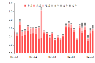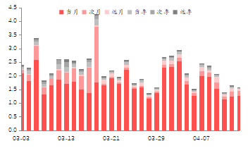 沪深300期权合约日均成交量较上周小幅下跌;近月平值看涨期权隐含波动率为11.70%,较前值下降2.42%;看跌期权隐含波动率为11.70%,较前值下降2.49%。中证1000期权合约日均成交量较上周小幅上涨;近月平值看涨期权隐含波动率为12.84%,较前值下降1.25%;看跌期权隐含波动率为12.86%,较前值下降0.91%。上证50期权合约日均成交量较上周小幅上涨;近月平值看涨期权隐含波动率为14.13%,较前值下降1.06%;看跌期权隐含波动率为13.99%,较前值下降1.38%。