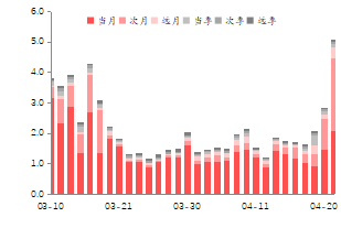 沪深300期权合约日均成交量较上周大幅上涨;近月平值看涨期权隐含波动率为14.41%,较前值上升2.71%;看跌期权隐含波动率为14.36%,较前值上升2.66%。中证1000期权合约日均成交量较上周大幅上涨;近月平值看涨期权隐含波动率为14.42%,较前值上升1.58%;看跌期权隐含波动率为14.39%,较前值上升1.53%。上证50期权合约日均成交量较上周大幅上涨;近月平值看涨期权隐含波动率为15.87%,较前值上升1.74%;看跌期权隐含波动率为15.83%,较前值上升1.84%。