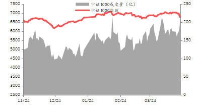 上周沪深300指数收于4032.57点,较前值下跌1.45%;累计成交16656亿元,日均成交3331亿元,较前值增加137亿元;中证1000指数收于6773.51点,较前值下跌3.51%;累计成交12104亿元,日均成交2421亿元,较前值下降77亿元;上证50指数收于2654.21点,较前值下跌0.93%;累计成交3579亿元,日均成交716亿元,较前值增加20亿元。两市融资融券余额为15485亿元,北向资金当周净流入25亿元。涨幅前五的行业分别是家电(3.76%)、煤炭(1.42%)、银行(1.39%)、食品饮料(-0.34%)、通信(-0.34%);涨幅后五的行业分别是房地产(-4.67%)、综合(-5.23%)、消费者服务(-5.58%)、电子(-5.89%)、综合金融(-9.44%)。