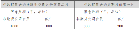 非期货公司会员和客户持有的某月份期权合约所有看涨期权的买持仓量和看跌期权的卖持仓量之和、看跌期权的买持仓量和看涨期权的卖持仓量之和,分别不得超过下表所示的持仓限额。具有实际控制关系的账户按照同一账户管理。