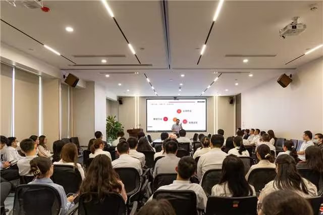 随后,首席风险官林帅从自身的职业发展出发,为在座员工提供了许多职业价值相关的干货,并通过各种实际案例为学员们提供切实可行的方式方法,引导大家积极思考和讨论。林帅表示,在职业发展中,首先要了解行业、了解公司和认清自我,这三个环节贯穿着整个职业生涯,同时个人的心态也会在职业生涯中经历不断的变化与调整。“自信自强、守正创新,团结才能胜利,奋斗才能成功”,他鼓励员工们自我修炼、创新学习,提升综合素质,机会都是留给有准备的人。