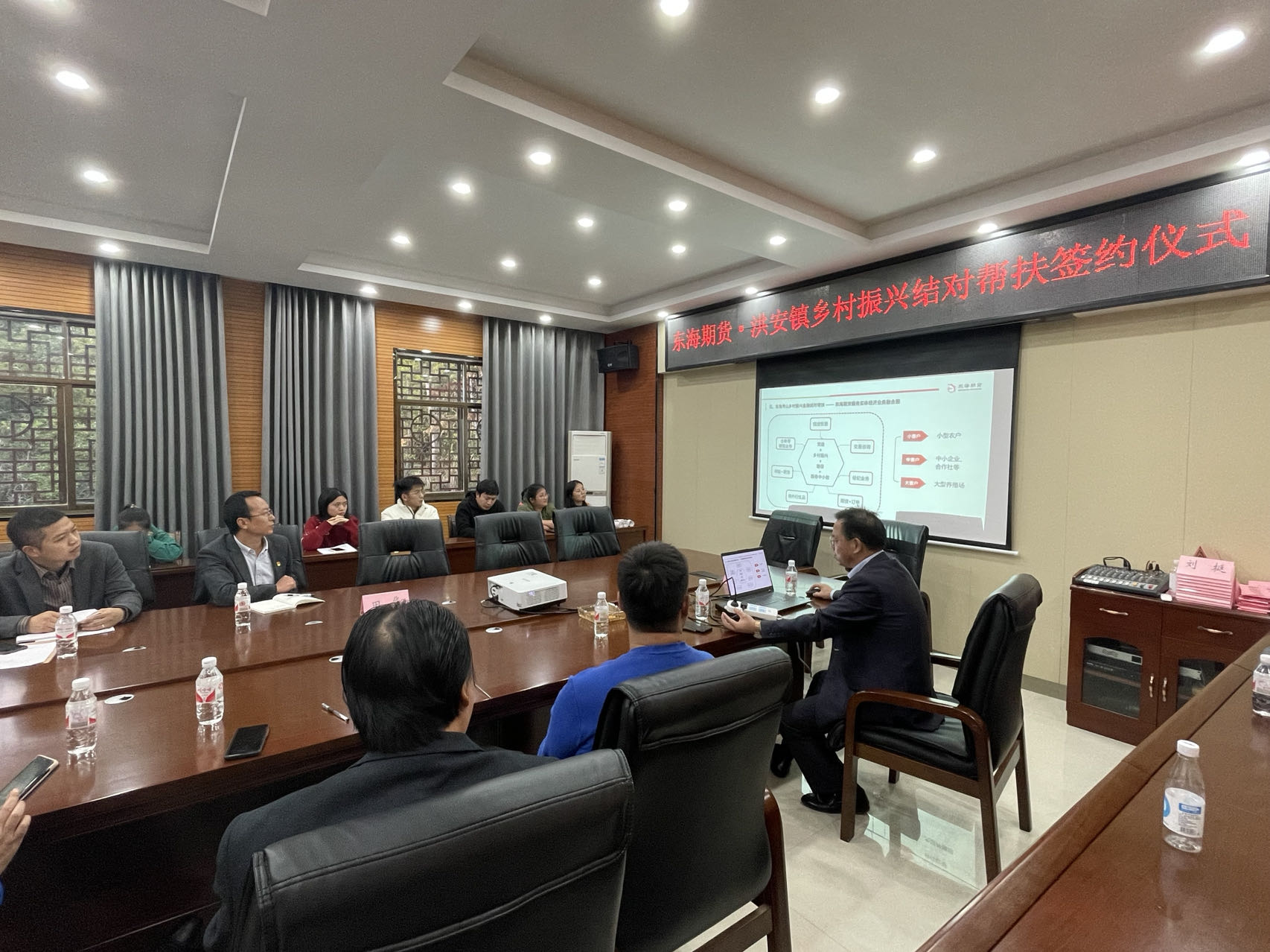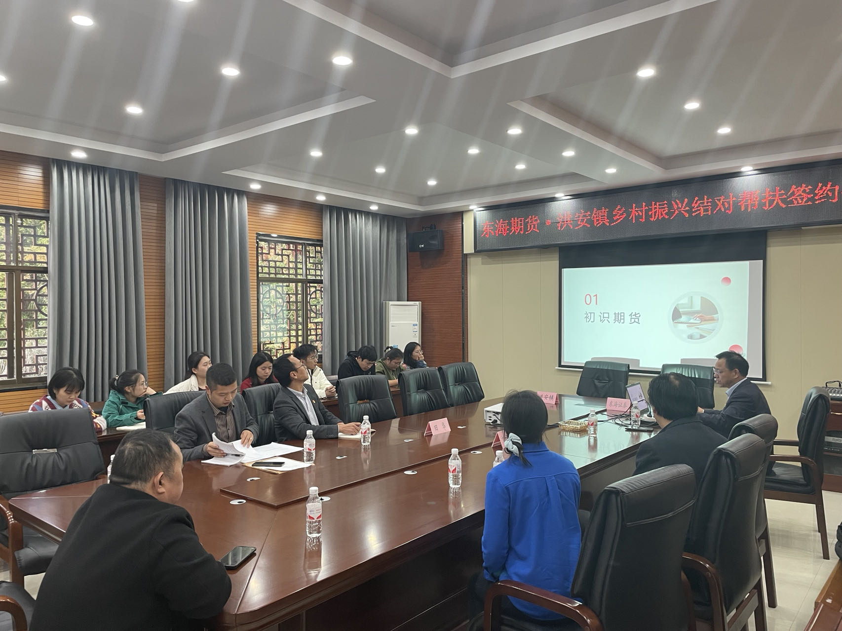 金融知识培训结束后,东海期货一行与秀山县洪安镇相关领导就生猪养殖、脐橙、水稻、红色文旅项目,包括产业振兴、生态改造、体制振兴以及文旅发展等方面进行了沟通,并从金融方面给予了专业的意见和建议。