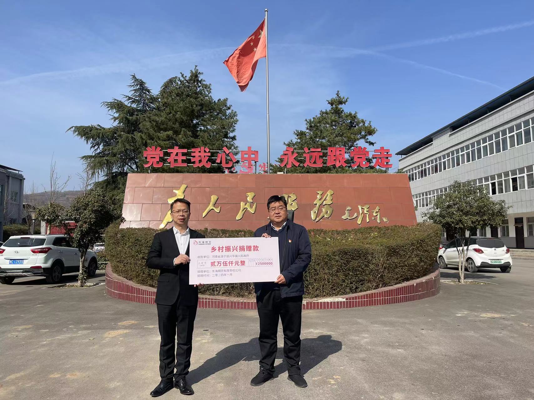 3月12日,东海期货助力洛宁县乡村振兴签约及捐赠仪式在洛宁县兴华镇人民政府举行,兴华镇镇长黄政、东海期货总经理助理一行出席仪式。东海期货向当地政府捐赠人民币25000元,用于路灯修建、生态帮扶,以及旅游示范村项目支持。