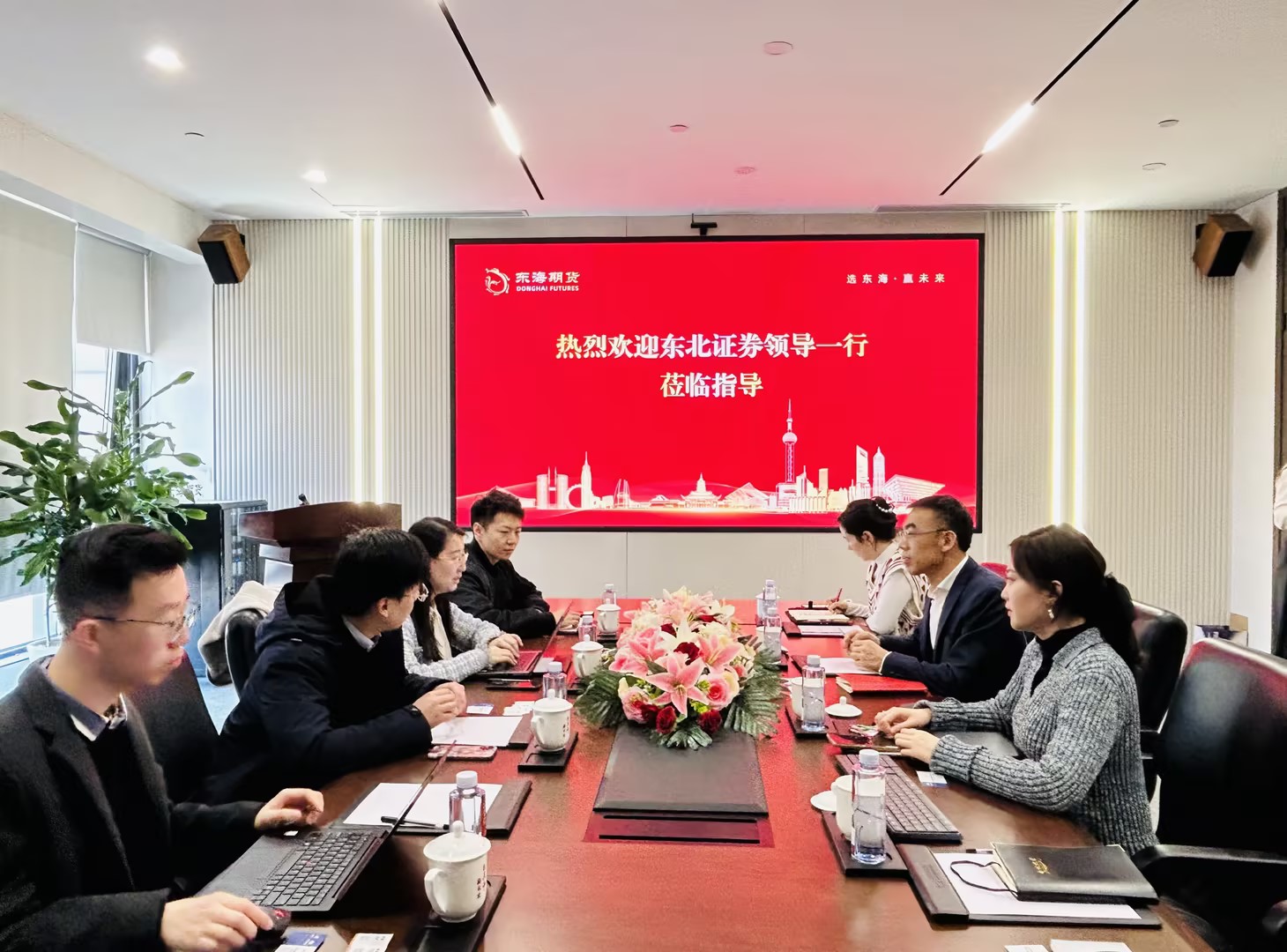 2024年3月21日,东北证券股份有限公司(以下简称“东北证券”)私募专班投资总监王娜琦、高级项目经理程果、私募策略研究员李飞翔及风险管理总部风险分析师林云智等领导一行莅临我司开展合作交流。东海期货总经理助理兼资产管理部总经理苏振军、资产管理部投资经理项慧、资产管理部“龙成FOF私募全景荟”负责人寇立群等负责接待。