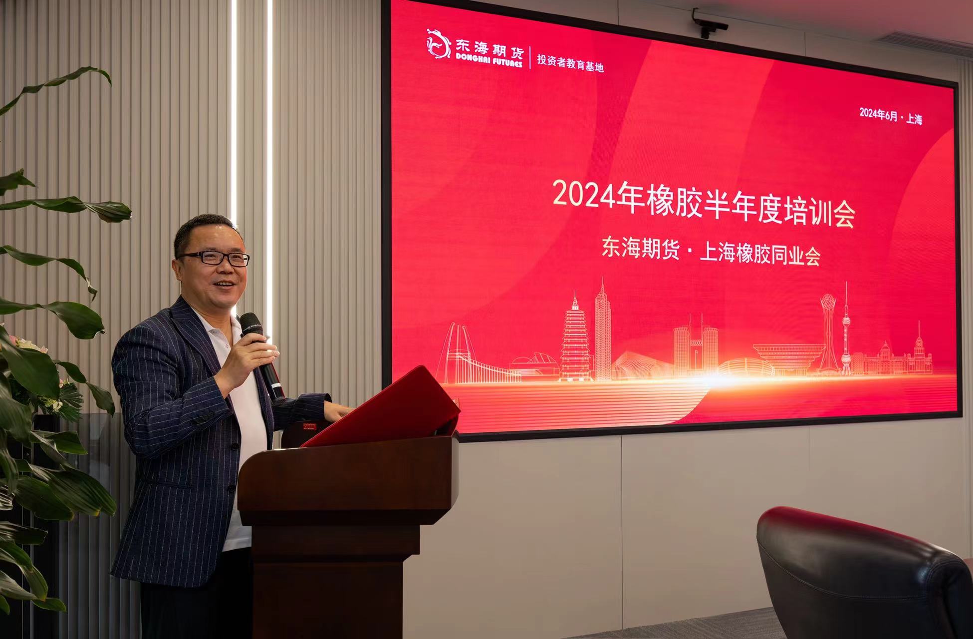 为全面贯彻“期货市场服务实体经济”的核心使命,2024年6月28日,由上海期货交易所支持,东海期货、上海橡胶同业会主办的“2024年橡胶半年度培训会”在上海成功举办。上海橡胶同业会会长、白石资产管理(上海)有限公司总经理王智宏,东海期货党总支书记、总经理陈太康出席并发表致辞,上海期货交易所代表莅临指导。