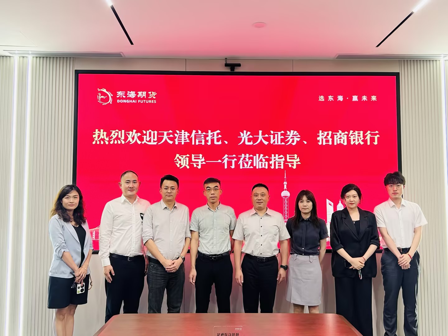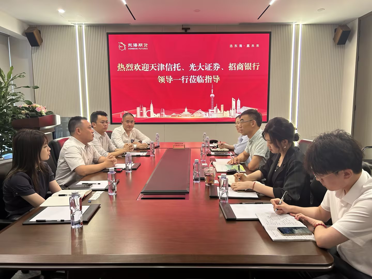 2024年7月30日,天津信托长三角区域总部副总经理杨文瑜、招商银行上海分行投行与金融市场金融机构部副总经理袁星星及金融机构公募基金与信托客户部江曹阳、光大证券淮海中路营业部机构负责人唐勇斌等领导一行莅临东海期货开展合作交流。会议深入分析了当前市场环境下不同金融机构的创新和转型升级道路,探索以FOF合作为切入点,共同建立“信托、银行、证券、期货”的四方合作新模式,以为客户提供更加优质、全面的资产配置服务。
