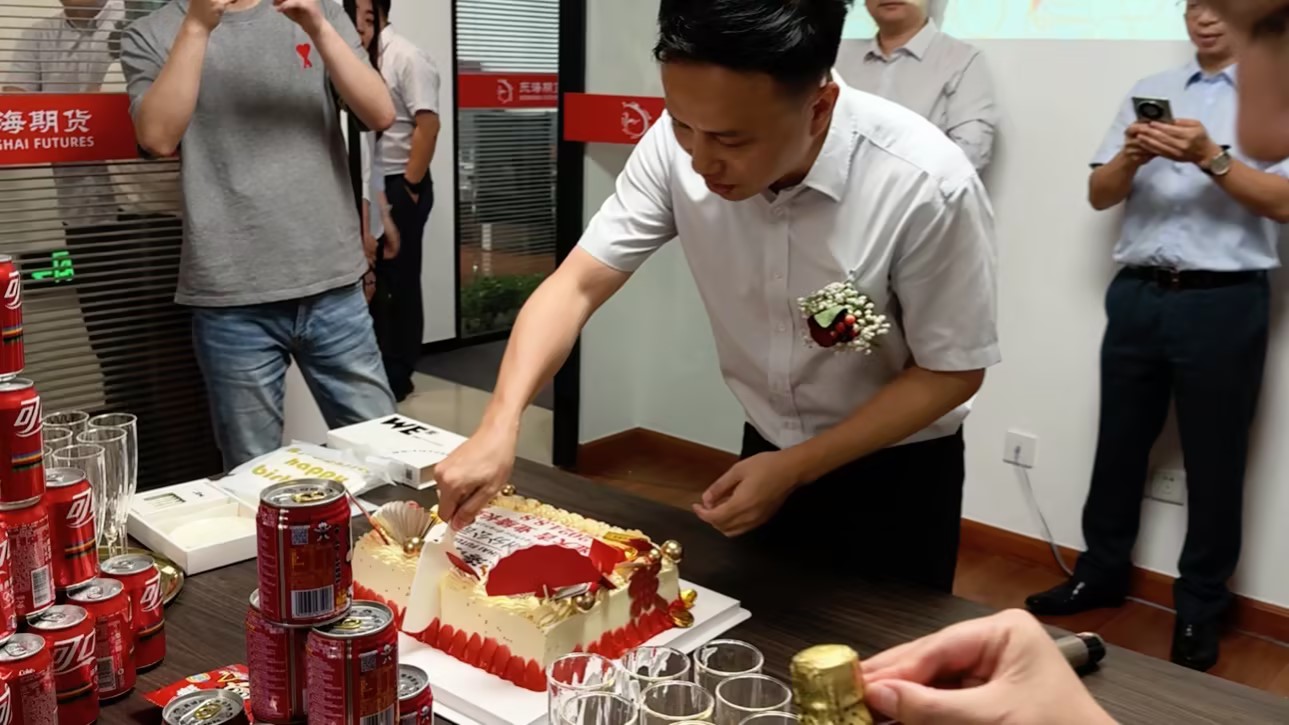 常州分公司总经理周岐峰进行切蛋糕、倒香槟流程。