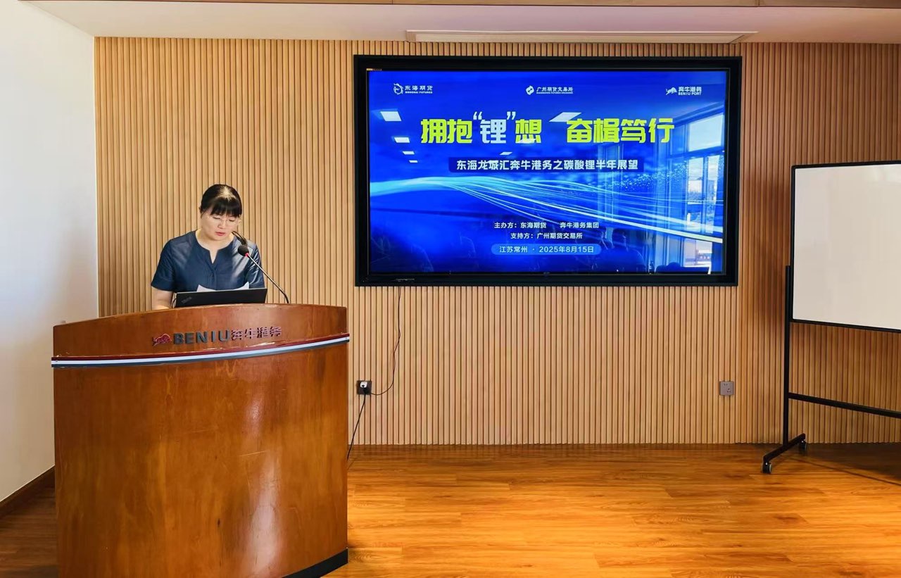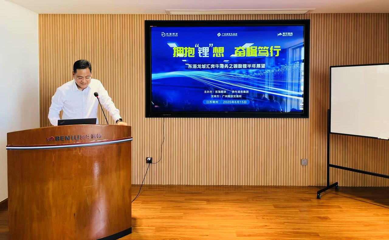 为深入贯彻绿色发展理念,积极响应广州期货交易所“助绿向新”专项号召,东海期货以服务常州实体经济为使命,携手江苏奔牛港务集团有限公司,于8月15日在常州奔牛港举办主题交流会。此次活动聚焦新能源产业链核心原材料——碳酸锂的市场动态与风险管理,旨在为常州及周边地区新能源企业提供精准的行业研判与有效的实操工具,助力企业稳健穿越周期波动,共绘绿色产业新图景。