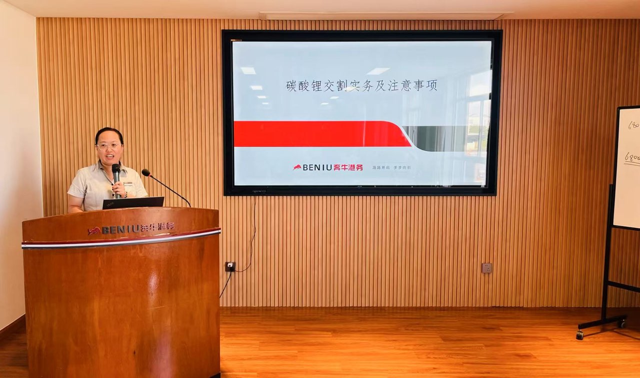 会议特邀三位行业专家带来深度分享。上海钢联新能源高级研究员方李喆从供需情况、宁德事件的影响及平衡表等维度,深度解析碳酸锂市场运行脉络,为2025年下半年行情走向提供前瞻性研判;东海资本副总经理薛家铭结合企业套期保值实战经验,对场外期权工具的应用逻辑进行了系统梳理,并详细阐释不同场景下的对冲策略与风险防范要点;奔牛港务期货专员夏芬则围绕碳酸锂交割实务,从流程规范到风险规避,为企业交割环节提供全流程指导。