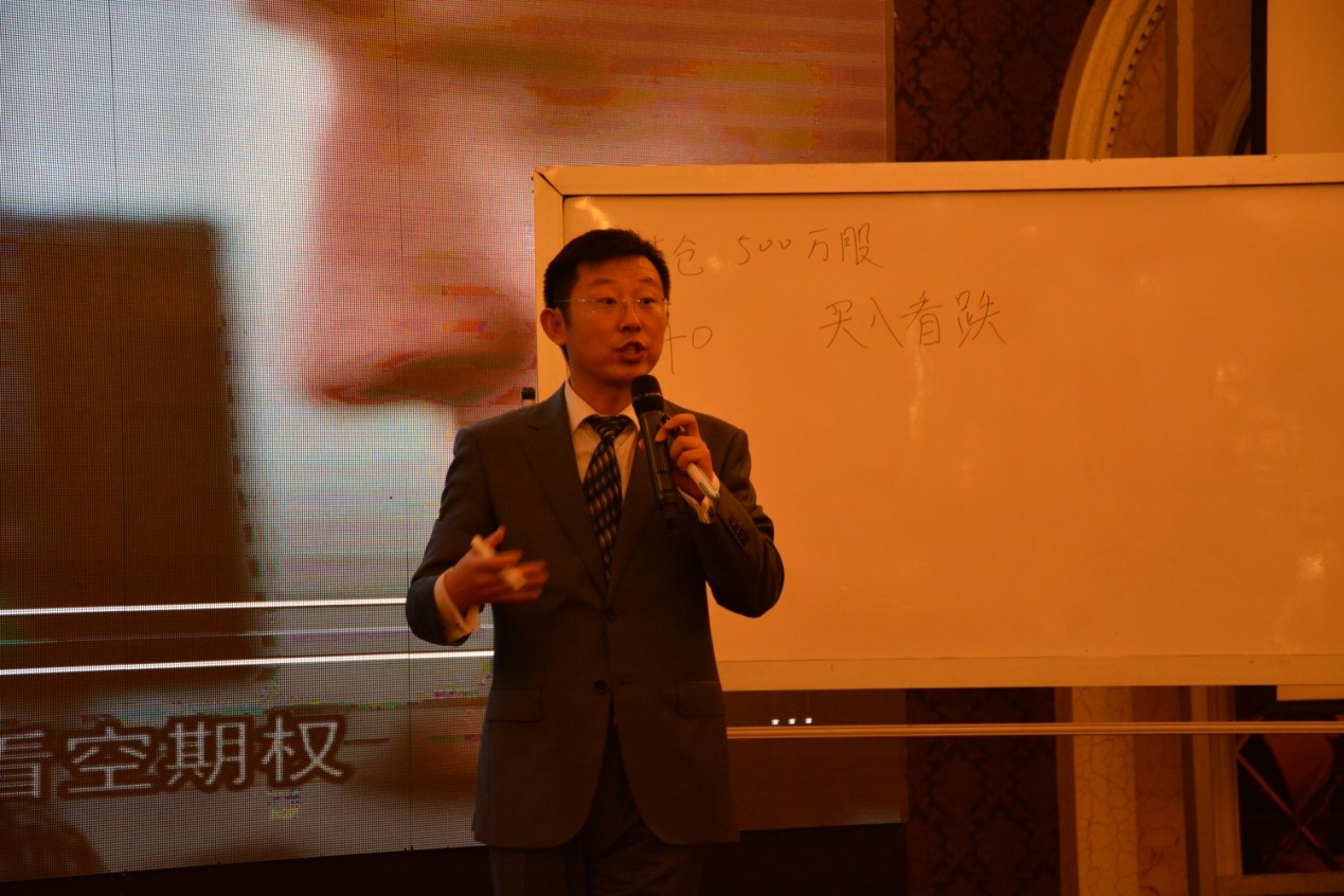 东海期货期权部总经理助理宋鹏先生,在《新“期”机,新财富》的演讲中,用浅显易懂又饱含激情的语言,就投资者最关心的期权投资获利机会、风险、及操作难易等问题进行阐述,或现实案例、或数据统计,给予投资者期权投资最直观的信息反馈。他还通过播放视频短片加现场白板解说的形式,引导投资者思考,并增进与投资者的互动,取得了良好效果。