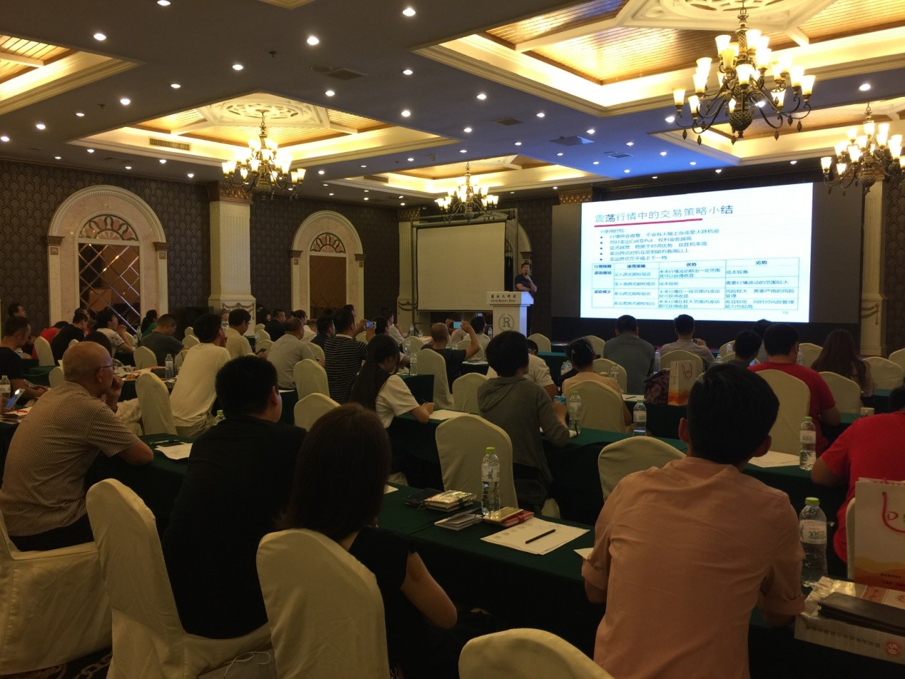 2017年8月12日,由东海期货主办,大连商品交易所特别支持的豆粕期权专题报告会在青岛丽晶大酒店成功举办。会议特邀台湾知名专家与投资者共同探讨期权理论与投资实务,共有70余名产业、机构及个人投资者参加。