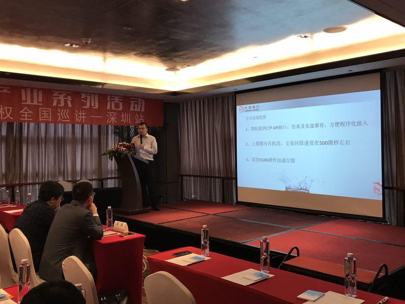 深圳营业部总经理陈龙锋先生在致辞中介绍了我司特色和优势,并表示我司会继续秉承客户至上的原则,为各位投资者提供更专业、更细致的服务。期权作为金融市场的重要风险管理和套利投机工具,投资者应该充分利用期权的“以小博大”优势,进行资产的保值增值。