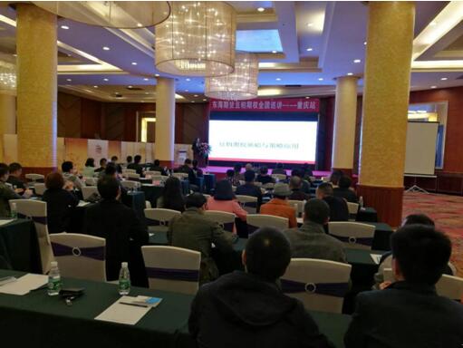 2017年11月18日下午,由东海期货有限责任公司主办、大连商品交易所特别支持的《乘风“粕”浪,“权”新起航》的豆粕期权专题报告会---“送期权进产业系列活动:东海期货豆粕期权全国巡讲---重庆站”,在公司的大力支持下在重庆逸安酒店成功举行。会议特别邀了台湾著名期货、期权机构法人业务代表庄佳宸女士与东海期货期权部总经理助理宋鹏先生、重庆渝江会私募基金创始人苏嘉伟先生及国内业内资深人士投资专家朱亚伟先生,与投资机构、相关企业等共50余名投资者共同探讨期权投资机遇。