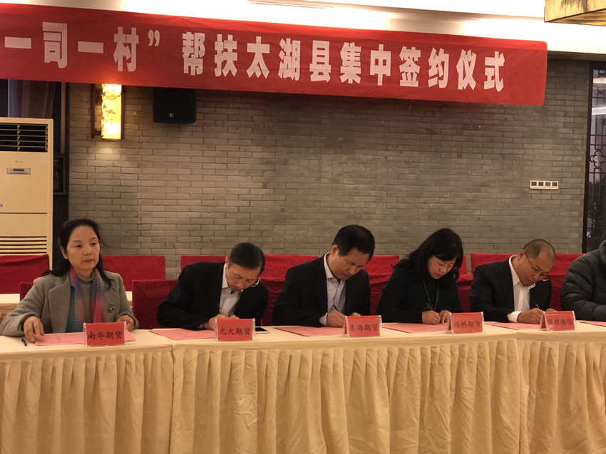 为积极贯彻党的十九大精神,坚决落实中国证监会、中国期货业协会精准扶贫工作的相关指导思想,东海期货于12月14日与安徽省太湖县签署了“一司一村”帮扶合作框架协议,以进一步推动该县实现脱贫目标,助推该县山区村村级集体经济发展。