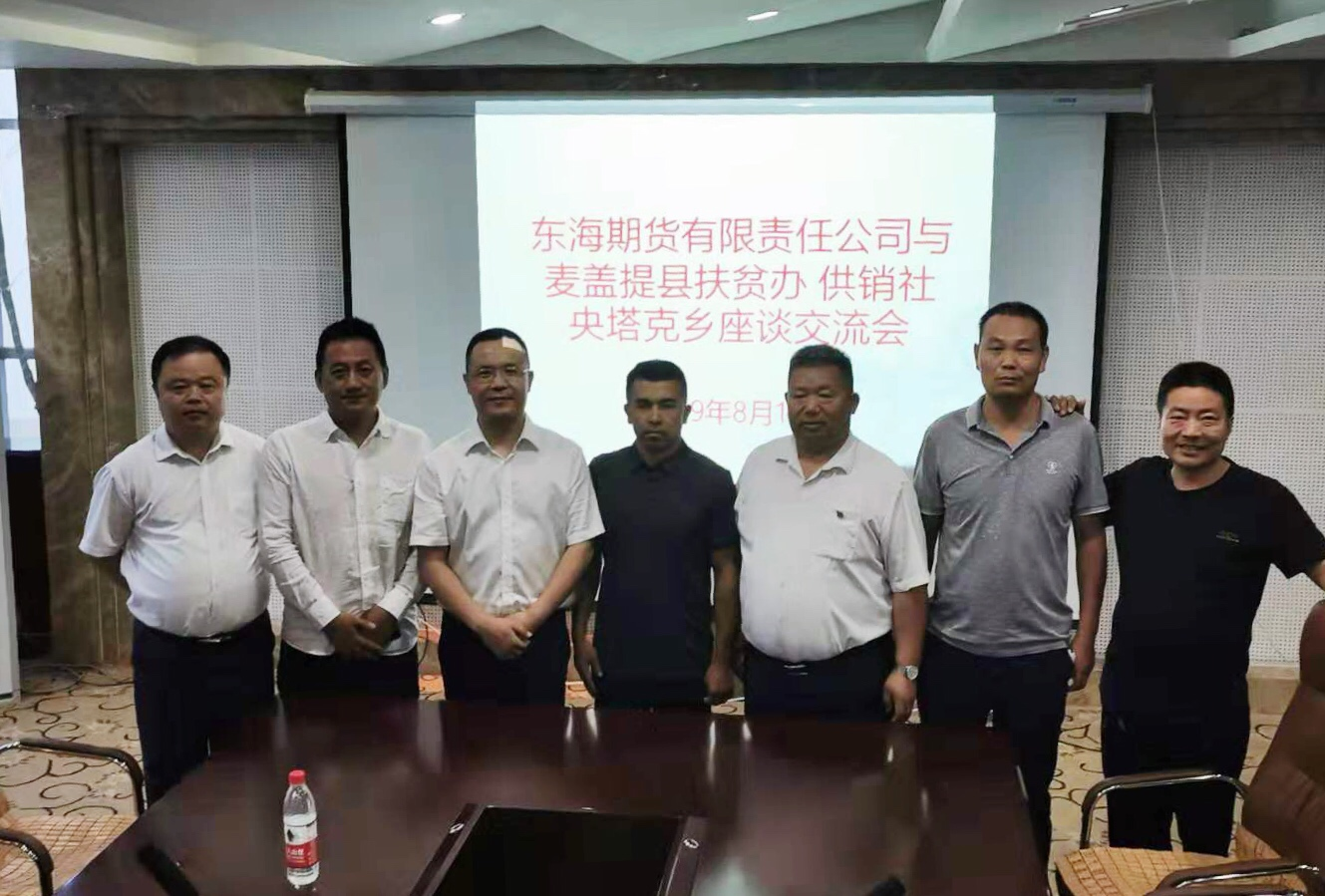 为了深入贯彻落实《中国期货业协会关于进一步推动期货公司做好扶贫工作的通知》精神,服务国家扶贫攻坚战略,推动东海期货“公益+产业”双轮驱动社会责任理念的落地,8月中旬,东海期货总经理陈太康一行来到国家级贫困县——新疆维吾尔自治区喀什地区麦盖提县央塔克乡进行实地调研,旨在进一步深化落实双方于2019年年中签订的帮扶合作框架协议。同行调研的还有东海资本总经理苏振军、东海期货总经理助理樊雅娟、东海期货河南分公司经理孟磊、东海期货研究所高级研究员姚序等。