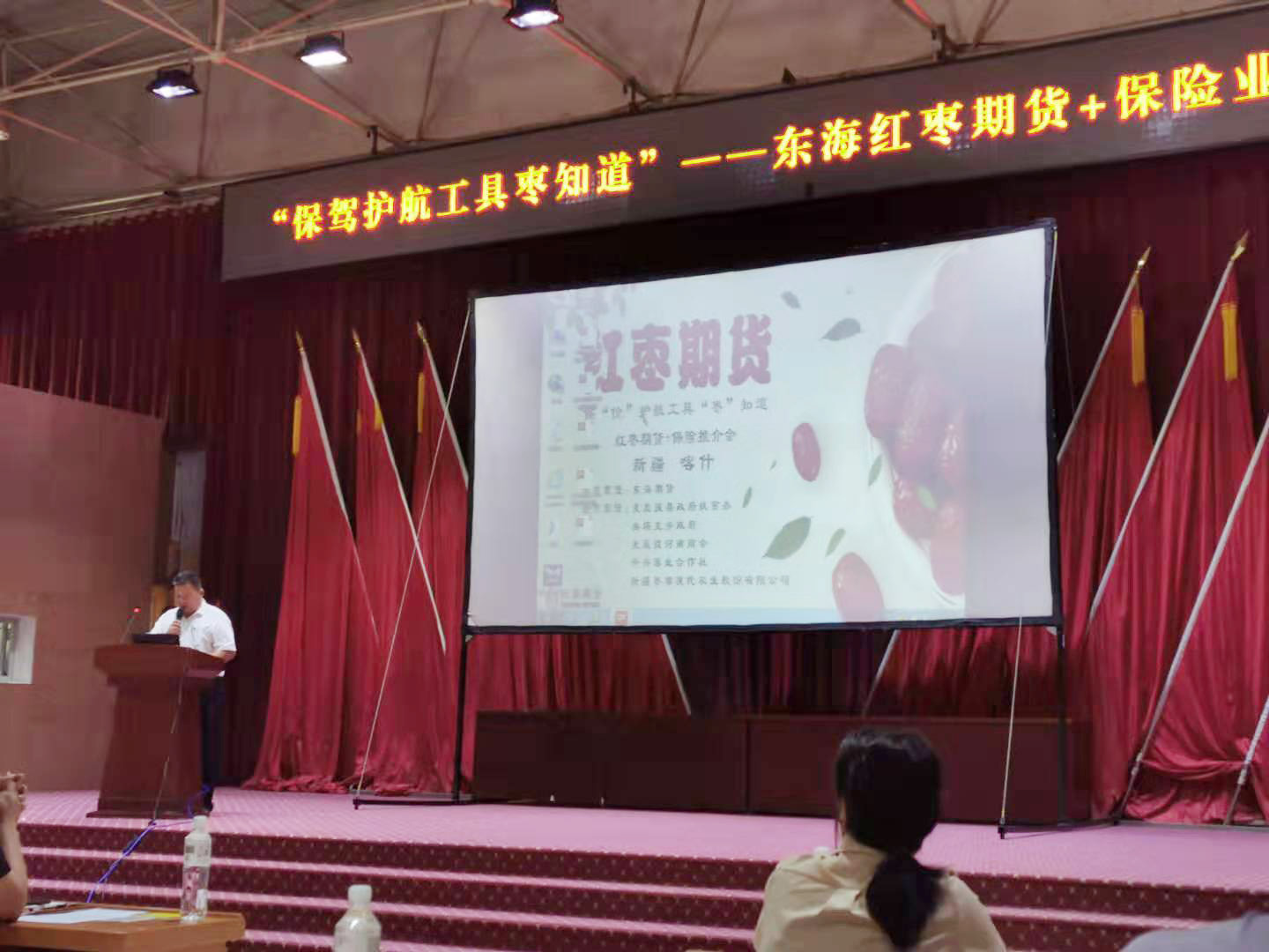 在“保价护航工具“枣”知道—东海期货红枣期货+保险推介会”上,东海资本总经理苏振军、东海期货总经理助理樊雅娟、东海期货高级研究员姚序分别作了精彩的主题演讲,为合作社负责人、规模种植户、贸易商等详细介绍了期货的基础知识和应用原理。讲师们深入浅出的讲课方式,受到了大家的热烈欢迎,大家纷纷表示对“保险+期货”这一助农、惠农的模式有了更加深入的了解。