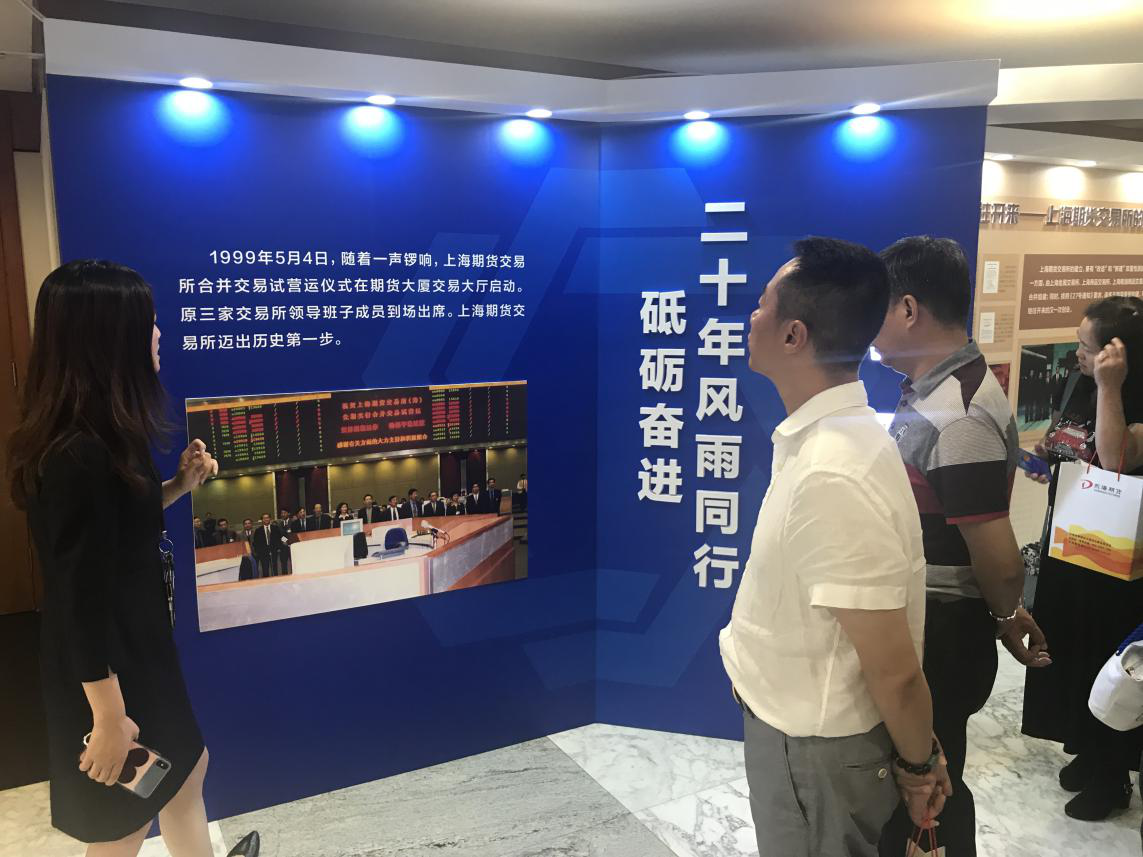 行程的最后一站,成员们来到了上期所二楼,参观了上期所举办的“初心与梦想----上海交易所发展历程展”,跟随着一幅一幅的画卷,大家领略了上海期货交易所----这个位于全中国金融中心上海的交易所,一路走来的风雨历程,二十年来,乘着改革开放的春风,上期所从有到无,从小到大,从初期混乱无序的全国交易所市场杀出,到如今成为会员单位遍布全国各地、连续两年全球交易规模最大的交易所,让大家感奋不已。