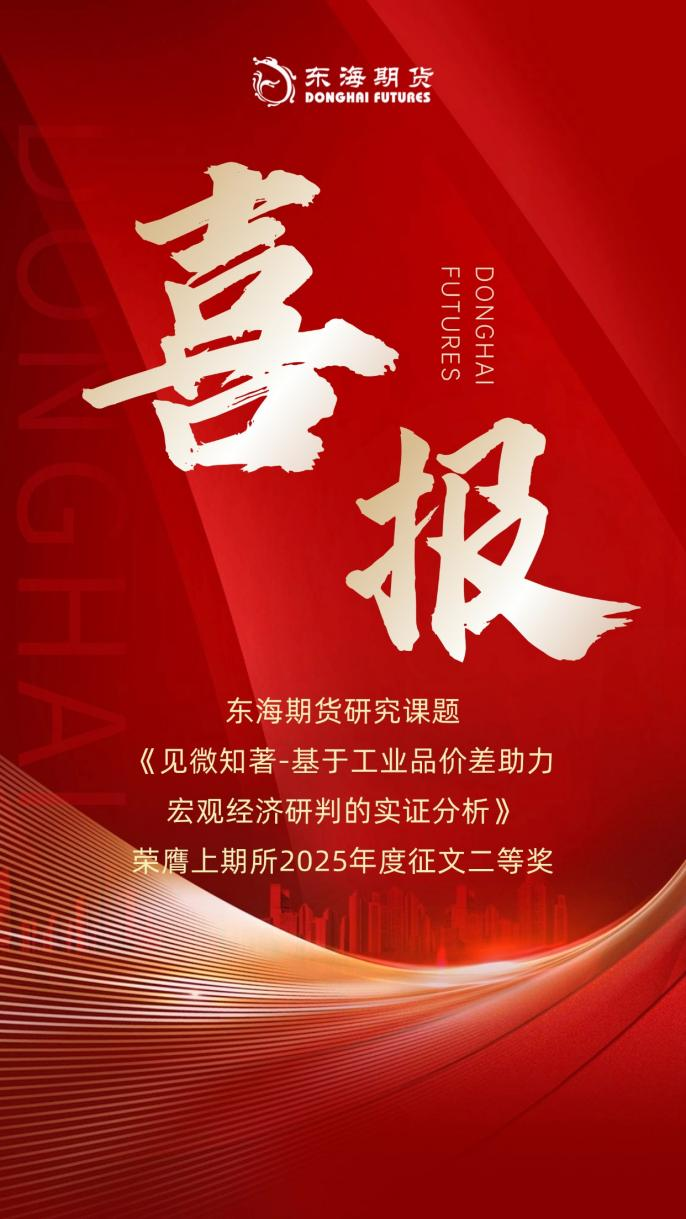 近日,上期所公布了2025年《期货与金融衍生品》征文活动评选结果,凭借着对于宏观经济周期和工业品价差与宏观经济关系的深入研究,东海期货撰写的《见微知著-基于工业品价差助力宏观经济研判的实证分析》荣获二等奖。