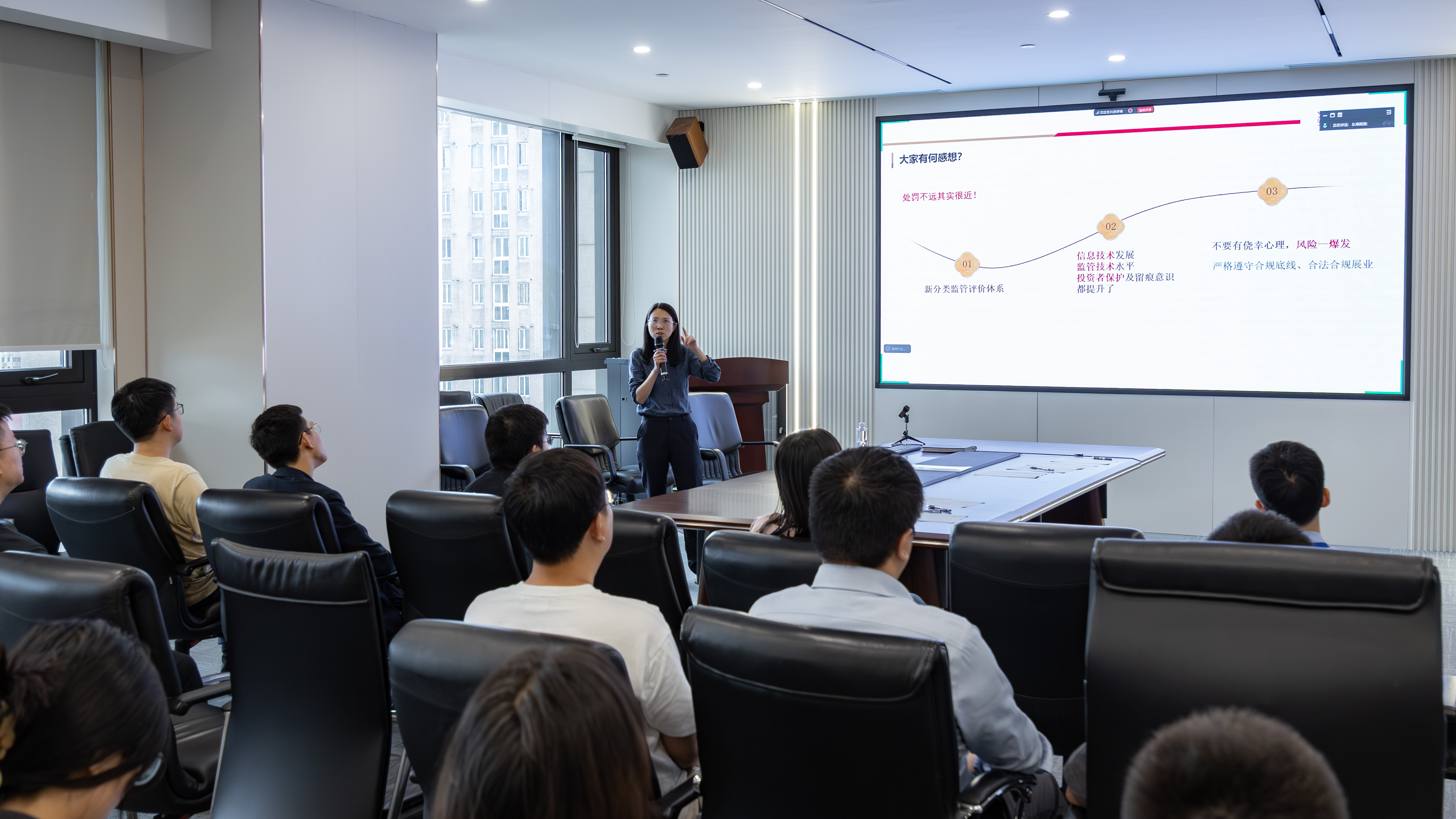 一个小时的培训在热烈掌声中收官。这堂课既有“监管震撼片”,又有“操作工具包”,为日后稳健展业拧紧了“安全阀”。期望本次培训能够为东海期货员工在执业展业上保驾护航,让廉洁合规成为每位员工的专业底色。