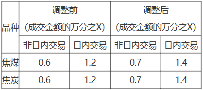 经研究决定,自2021年5月18日交易时(即5月17日夜盘交易小节时)起,对焦煤和焦炭期货品种1月、5月和9月合约的手续费标准进行调整,具体如下: