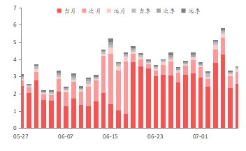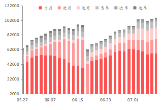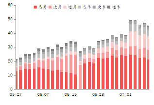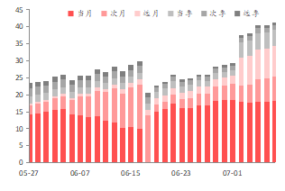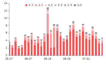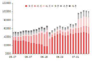 期权行情:上周合约日均成交量总体维持不变。近月平值看涨期权隐含波动率为19.87%,较前值下降1.14%;看跌期权隐含波动率为20.38%,较前值下降0.49%。