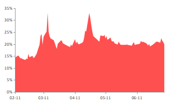 图10:看跌期权隐含波动率(近月平值) |