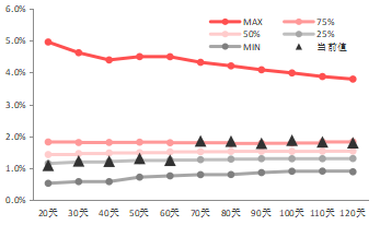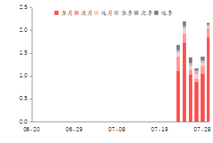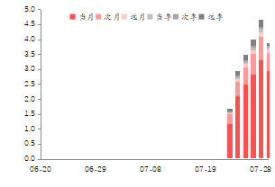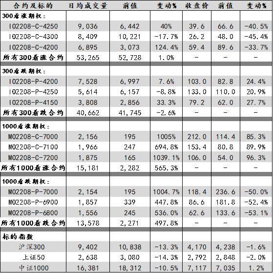 期权行情:上周沪深300期权合约日均成交量保持稳定;近月平值看涨期权隐含波动率为17.55%,较前值下降1.47%;看跌期权隐含波动率为18.05%,较前值下降1.12%。中证1000期权合约上市第二周日均成交量大幅上升;近月平值看涨期权隐含波动率为22.44%,较前值下降0.76%;看跌期权隐含波动率为22.31%,较前值下降0.69%。