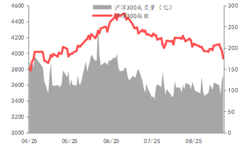 标的指数与行情:上周沪深300指数收于3932.68点,较前值下跌3.94%;累计成交8996亿元,日均成交2249亿元,较前值增加128亿元;中证1000指数收于6481.24点,较前值下跌6.25%;累计成交6630亿元,日均成交1657亿元,较前值下降56亿元。两市融资融券余额为14934亿元,北向资金当周净流出61亿元。涨幅前五的行业分别是国防军工(-0.65%)、银行(-0.78%)、食品饮料(-0.88%)、消费者服务(-1.07%)、家电(-2.48%);涨幅后五的行业分别是基础化工(-6.84%)、电力及公用事业(-7.24%)、煤炭(-7.31%)、有色金属(-7.48%)、电力设备及新能源(-9.16%)。